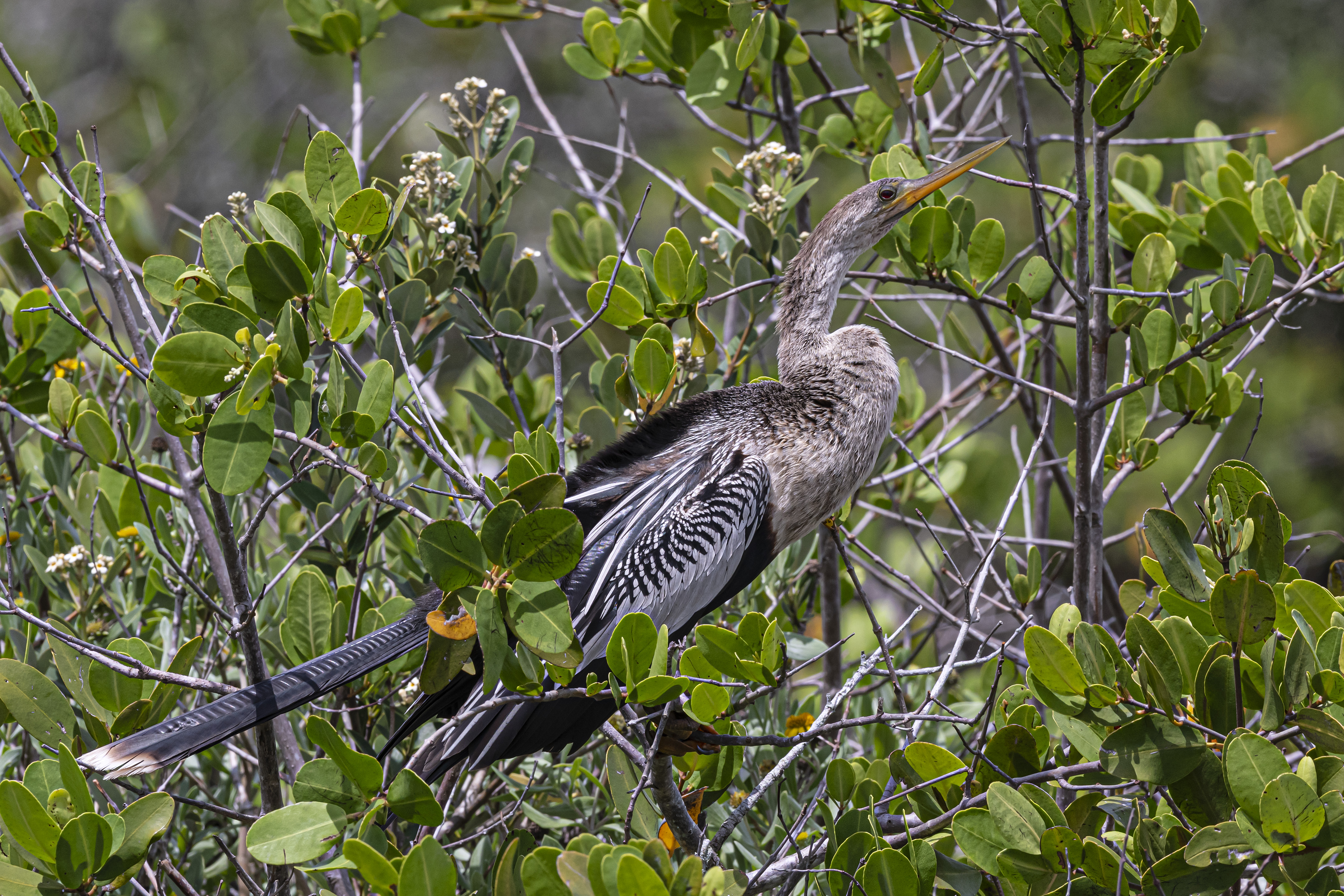 Anhinga (immature) nicknames 'water turkey' and 'snake bird'